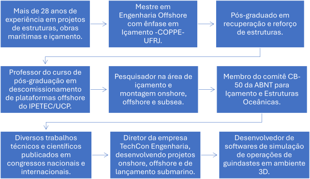 Instrutor com 28 anos de experiência em projetos de estruturas e içamento.